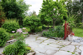 Her er en liten sniktitt på hvordan det ser ut bak huset vårt nå. Sol, varmt, roser, astilber, spirea, stjerneskjerm og liljer.